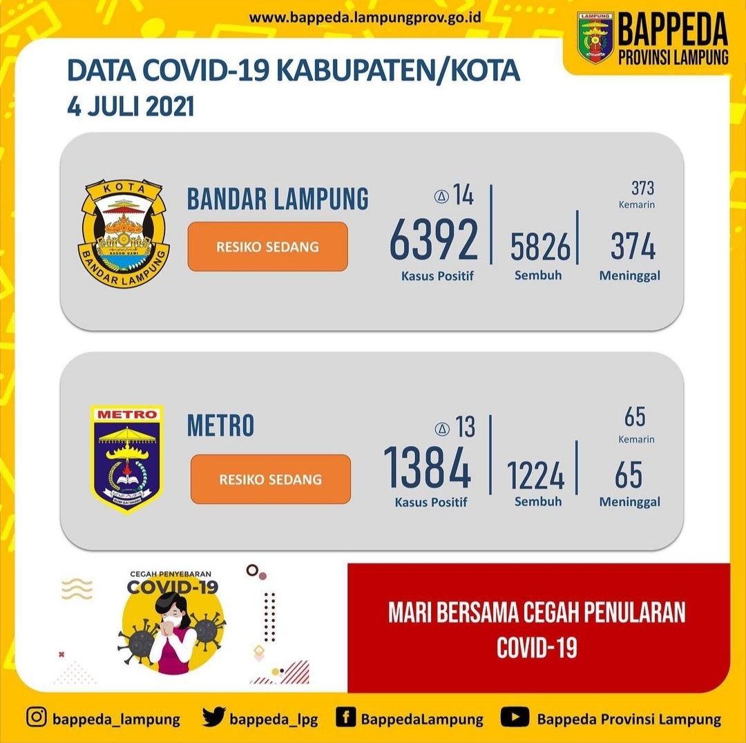 Satgas Covid-19 di Kota Metro menyampaikan info hari ini, bahwa terdapat penambahan kasus konfirmasi sebanyak 13 orang, Minggu (04/07/2021).